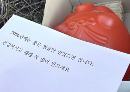 곧장 현장으로 달려간 직원은 돼지저금통이 들어있는 종이 박스를 발견했다. 상자 안에는 지폐 다발과 돼지저금통이 들어 있었다. 또 "2026년에는 좋은 일만 있었으면 합니다. 건강하시고 새해복많이 받으세요"라고 적힌 쪽지도 들어 있었다.