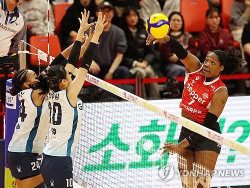 (광주=연합뉴스) 조남수 기자 = 30일 광주 서구 페퍼스타디움에서 열린 프로배구 V리그 여자부 페퍼저축은행과 GS칼텍스의 경기. 페퍼저축은행 조이가 공격하고 있다. 2025.12.30