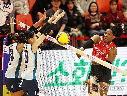 (광주=연합뉴스) 조남수 기자 = 30일 광주 서구 페퍼스타디움에서 열린 프로배구 V리그 여자부 페퍼저축은행과 GS칼텍스의 경기. 페퍼저축은행 조이가 공격하고 있다. 2025.12.30