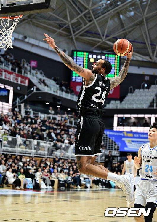[OSEN=수원, 조은정 기자] 30일 오후 서수원칠보체육관에서 2025-2026 LG전자 프로농구 수원 KT 소닉붐과 서울 삼성 썬더스의 경기가 열렸다. 수원 KT는 12승 14패로 6위, 서울 삼성은 9승 16패로 7위를 기록 중이다. 4쿼터 KT 윌리엄스가 원핸드 덩크를 넣고 있다. 2025.12.30 /cej@osen.co.kr