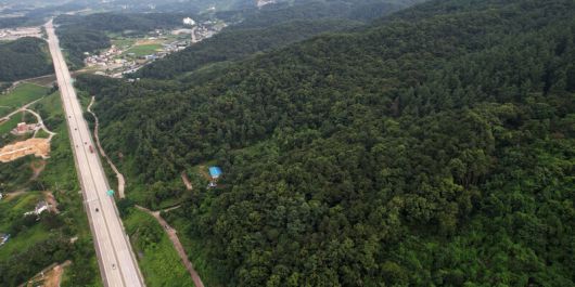 국토교통부가 2023년 5월 변경한 양평고속도로 종점부에서 500m 떨어진 김건희 일가 땅 부지. 김혜윤 기자 unique@hani.co.kr |