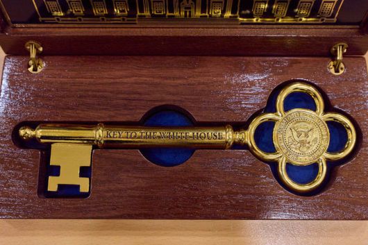 [서울=뉴시스] 최동준 기자 = 대통령실은 30일 도널드 트럼프 미국 대통령이 이재명 대통령에게 선물한 '백악관 황금열쇠'를 SNS에 공개했다. (사진=이재명 대통령 SNS) 2025.12.30. photo@newsis.com *재판매 및 DB 금지