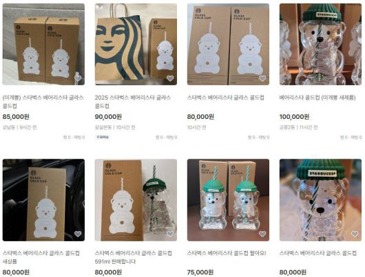 29일 국내 재출시된 스타벅스의 한정 굿즈인 ‘베어리스타 콜드컵’이 인기를 끌고 있다. 정가는 4만5000원이지만, 중고로 되파는 가격인 ‘리셀가’가 10만 원 이상으로 치솟았다.