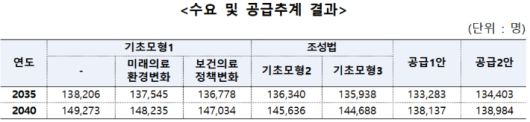 의료 이용 적정화 등 보건의료 정책 변화를 고려한 시나리오를 적용할 경우 수요는 2035년 13만 6778명, 2040년 14만 7034명으로 각각 나타났다.