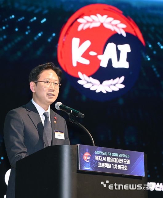 과학기술정보통신부와 정보통신산업진흥원(NIPA)가 30일 서울 삼성동 코엑스에서 '독자 AI 파운데이션 모델' 프로젝트 1차 발표회를 개최했다. 배경훈 부총리 겸 과학기술부 장관이 환영사를 하고 있다.
