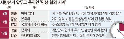 고물가·고금리와 경기 둔화가 장기화하는 가운데 여야가 극한 대치를 이어가면서도 민생·경제 법안을 중심으로 협치의 물꼬를 트고 있다. 내년 지방선거를 약 6개월 앞두고 국회가 ‘민생 성과’를 선거의 핵심 변수로 인식하면서 쟁점 법안과 분리된 비쟁점 민생 입법부터 처리하는 흐름이 점차 뚜렷해지는 모습이다.