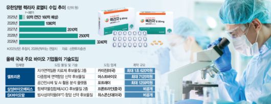 유한양행의 오픈이노베이션이 성과를 내면서 국내 기업들의 협력도 한층 강화됐다. 가장 활발한 곳은 셀트리온(068270)이다. 올 11월 미국 바이오테크 카이진과 자가면역질환 치료를 위한 항체 기반 신약 후보 물질 2종에 대해 최대 1조 620억 원 규모 독점 라이선스 계약을 맺었다. 국내 바이오테크 포트래이로부터는 1259억 원 규모로 공간전사체 및 인공지능(AI) 분석 플랫폼 ‘포트래이타깃’을 도입해 신약 탐색에 나섰다. 바이오시밀러를 넘어 신약개발에 나선 셀트리온이 풍부한 자금력을 바탕으로 국내외를 가리지 않고 기술도입에 나선 것이다. 이외에도 삼성바이오에피스도 중국 업체 프론트라인과 항체약물접합체(ADC) 신약 개발 파트너십을 맺고 후보물질 2종의 공동 개발권을 확보했다. SK바이오팜(326030)은 미국 위스콘신대 기술이전기관(WARF)로부터 전임상 단계의 항암 방사성의약품(RPT) 후보물질을 도입했다.
