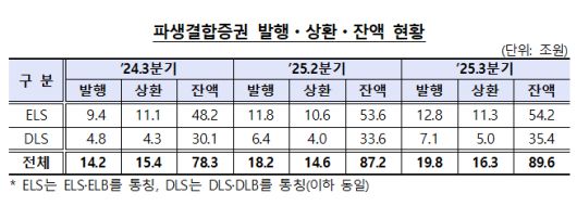 금융감독원이 31일 발표한 '2025년 3분기 증권회사 파생결합증권 발행·운용 현황'에 따르면 파생결합증권 발행액은 19조8000억원으로 지난해 동기대비 5조7000억원 증가했다. 상환액은 16조3000억원으로 지난해보다 9000억원 늘었다.