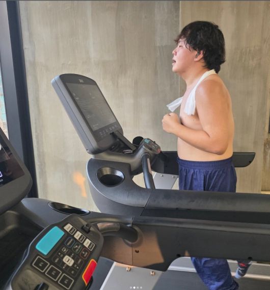 사진 속 곽튜브는 웹툰작가 겸 방송인 기안84와 체육관 바닥에 앉아서 쉬고 있다. 또 상의를 탈의하고 러닝머신을 뛰는 모습도 볼 수 있다.
