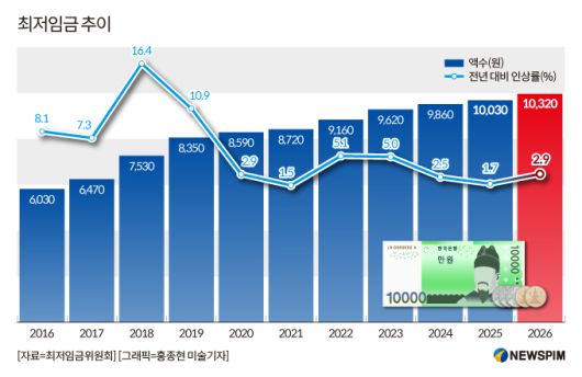 ◆ 내년 최저임금 1만320원…월 215만6880원