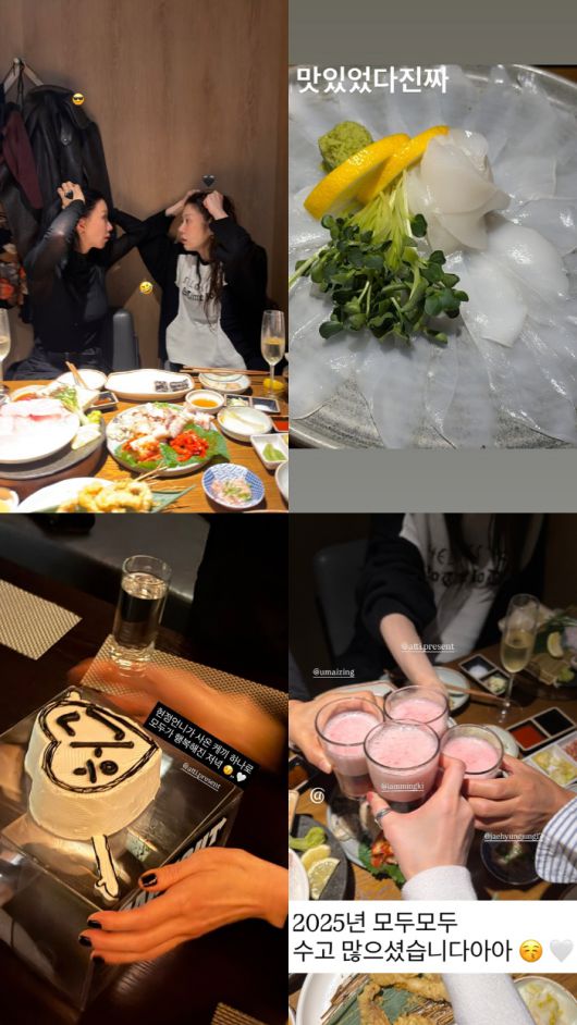 강민경은 고현정과 엄정화를 '퀸'이라고 칭하며 음식을 먹는 사진을 공개하는가 하면, 함께 건배를 하고 있는 모습과 함께 "2025년 모두 수고 많으셨습니다"라고 전했다.