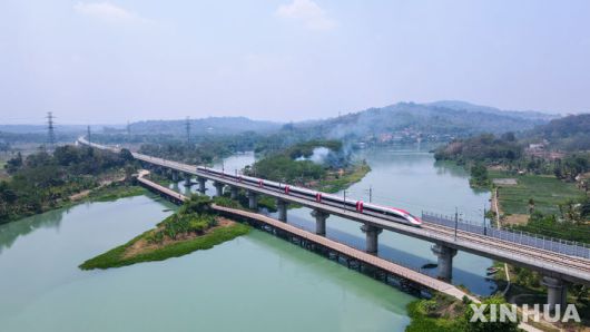 [베이징=신화/뉴시스] 중국의 핵심 대외 국책사업 ‘일대일로(육로·해상 실크로드)’의 상징 중 하나인 인도네시아 자카르타-반둥 고속철이 베이징에서 열리는 일대일로 정상포럼에 맞춰 17일 공식 운행에 돌입했다. 고속철이 운행되는 모습. 2023.10.18 |