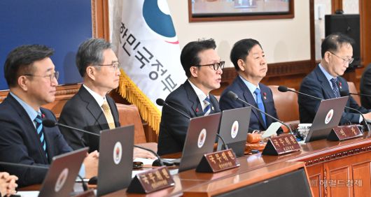 [헤럴드경제=임세준 기자] 김민석(가운데) 국무총리가 31일 오전 서울 종로구 정부서울청사에서 열린 임시 국무회의에서 모두발언을 하고 있다.