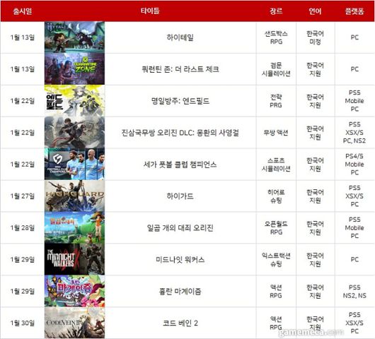 ▲ 2026년 1월 게임 기대작 (표: 게임메카 제작)