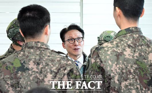 [더팩트ㅣ파주=임영무 기자] 김민석 국무총리가 31일 오전 경기도 파주 육군 9사단 임진강대대를 찾아 함께 근무중인 형제 장병을 격려하고 있다.
