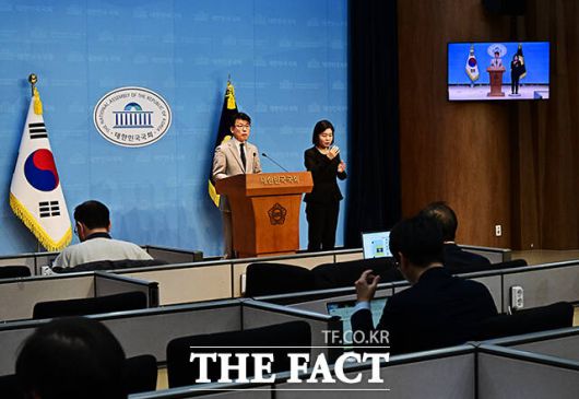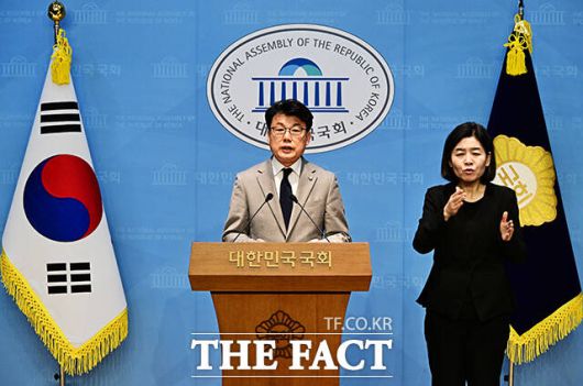 [더팩트ㅣ국회=배정한 기자] 진성준 더불어민주당 의원이 31일 오전 서울 여의도 국회 소통관에서 기자회견을 열고 원내대표 보궐선거 출마선언을 하고 있다.