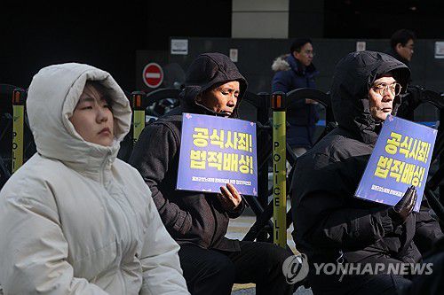 (서울=연합뉴스) 서대연 기자 = 서울 기온이 영하권으로 떨어지며 추운 날씨를 보인 31일 서울 종로구 주한 일본대사관 인근에서 열린 제1733차 일본군 성노예제 문제해결을 위한 정기 수요시위에서 참가자들이 외투 모자를 쓰고 있다. 2025.12.31