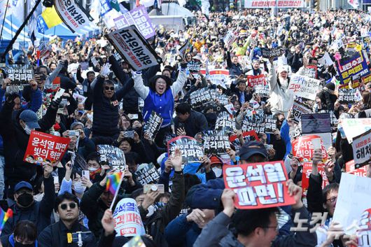 헌법재판소가 윤석열 대통령의 파면을 선고하자 지난 4월 4일 서울 종로구 안국역 인근에서 윤 대통령 탄핵에 찬성하는 시민들이 환호하고 있다. 헌재는 재판관 만장일치 의견으로 탄핵소추를 인용했다. 류영주 기자 |