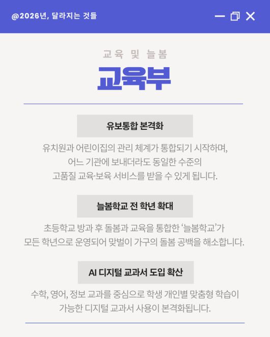 • AI 디지털 교과서 도입 확산: 수학, 영어, 정보 교과를 중심으로 학생 개인별 맞춤형 학습이 가능한 디지털 교과서 사용이 본격화됩니다.