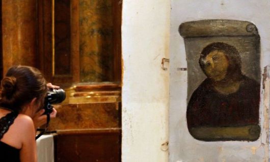 당시 성당측은 100년 넘은 예수 벽화 복원 작업을 전문가가 아니라 독실한 신도였던 노부인 히메네스에게 맡기기로 결정했다.
