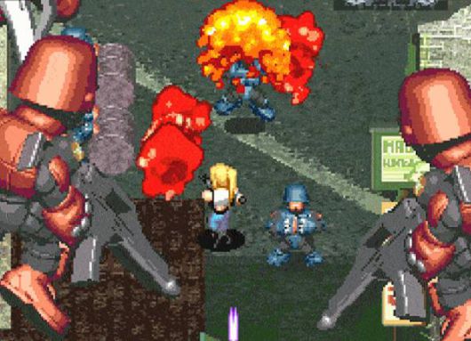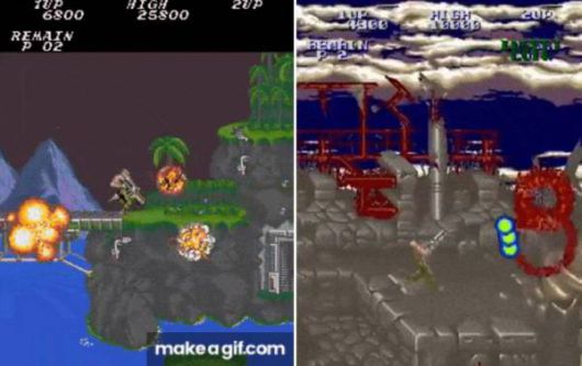 검떠: 혼두라!! 사실상 먼저 소개했던 '메탈 슬러그'의 시조 격인 게임이죠. 횡스크롤 슈팅 게임의 바이블 같은 형태의 게임인데, 람보와 코만도 같은 두 캐릭터가 종횡무진 전장을 휘저어 놓습니다.