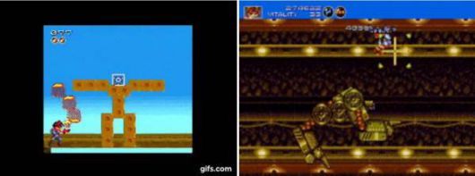 검떠: 이미지만 봐도 정말 경쾌하죠? 트레져의 간판 액션으로 당시 흔치않은 2인용이 가능한 액션 슈팅 게임입니다. 사실상 코나미의 혼두라 시리즈에서 영감을 가져왔지만(뭐 예전 코나미의 혼두라 시리즈를 만들던 스탭진들 일부가 나와서 창설한 팀이 트레져니까 말이죠)