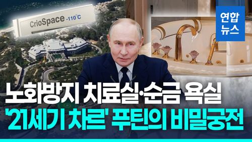 (서울=연합뉴스) 블라디미르 푸틴 러시아 대통령이 강제 병합한 우크라이나 크림반도에 '노화 방지용 냉동치료실'까지 갖춘 초호화 비밀 궁전을 소유하고 있다는 폭로가 나왔습니다.