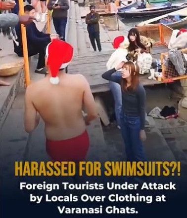 [파이낸셜뉴스] 인도 북부 힌두교 성지인 바라나시 갠지스강을 찾은 일본인 관광객들이 수영복과 산타클로스 모자를 착용했다가 현지인들에게 위협을 당하는 사건이 발생했다. 현지인들은 이들이 강에 소변을 봤다는 확인되지 않은 주장을 펼치며 관광객들을 몰아세워 논란이 일고 있다.