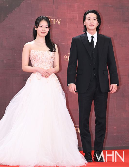 (MHN 이현지 기자) 배우 권한솔, 이태선이 31일 오후 서울 영등포구 KBS에서 진행된 '2025 KBS 연기대상'에 참석하고 있다.