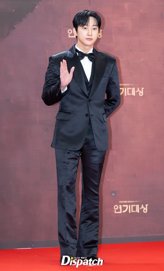 [Dispatch=이승훈기자] '2025 KBS연기대상' 레드카펫 행사가 31일 오후 서울 마포구 여의도 KBS신관웨딩홀에서 진행됐다. 진영은 블랙 수트로 멋진 맵시를 뽐냈다. 잘생긴 비주얼로 여심을 사로잡았다. 달콤한 손인사 미소에 반해 여심 스틸러 <저작권자 © 디스패치, 무단전재 및 재배포 금지>