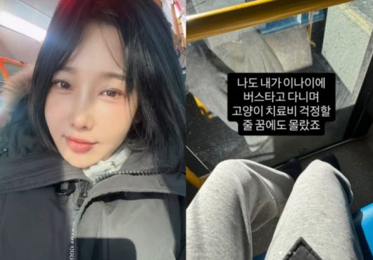 함께 공개한 사진에는 버스를 타고 이동 중인 이수진의 모습도 담겼다. 그는 "내가 이 나이에 버스 타고 다니며 고양이 치료비를 걱정할 줄은 꿈에도 몰랐다. 열심히 살지 않은 적 거의 없었으니까. 어쩔 수 없지"라고 했다.
