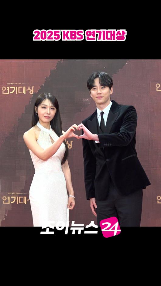 그룹 에이핑크 정은지, 배우 이준영이 31일 오후 서울 여의도 KBS에서 열린 '2025 KBS 연기대상' 레드카펫 포토월 행사에서 포즈를 취하고 있다. [영상=문수지 기자]