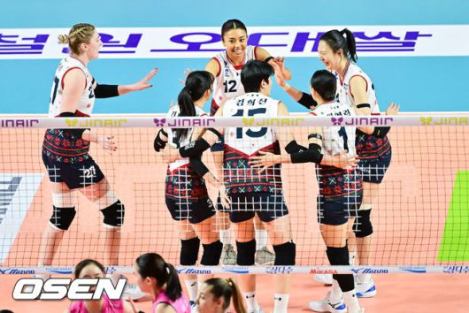 [OSEN=삼산체(인천), 박준형 기자] 31일 오후 인천 삼산체육관에서 프로배구 진에어 2025~26 V리그 흥국생명과 현대건설의 경기가 진행됐다. 흥국생명은 9승 9패 승점 29점으로 3위를, 현대건설은 12승 6패 승점 36점으로 2위를 차지하고 있다. 2세트 현대건설 자스티스가 득점 후 기뻐하고 있다. 2025.12.31 / soul1014@osen.co.kr