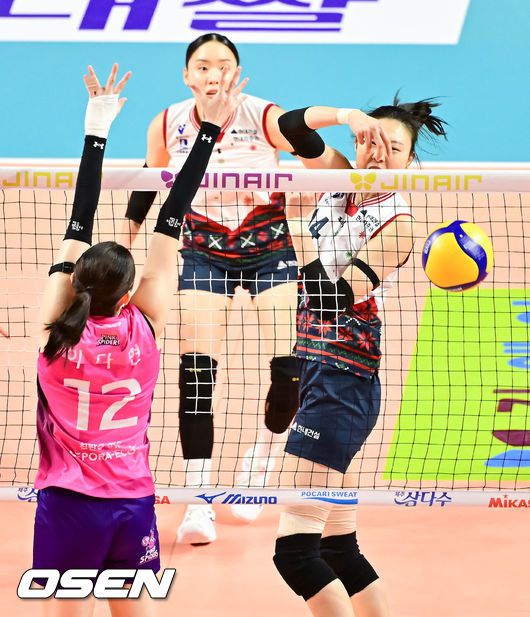 [OSEN=삼산체(인천), 박준형 기자] 31일 오후 인천 삼산체육관에서 프로배구 진에어 2025~26 V리그 흥국생명과 현대건설의 경기가 진행됐다. 흥국생명은 9승 9패 승점 29점으로 3위를, 현대건설은 12승 6패 승점 36점으로 2위를 차지하고 있다. 2세트 현대건설 양효진이 공격 성공하고 있다. 2025.12.31 / soul1014@osen.co.kr