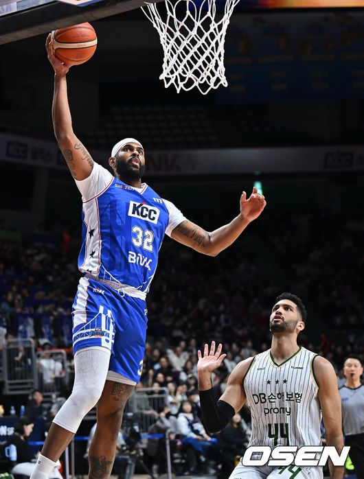 [OSEN=부산, 이석우 기자] 31일 부산 사직체육관에서 2025-2026 LG전자 프로농구 부산 KCC와 원주 DB의 경기가 열렸다. 2025년 마지막 경기가 8번째 농구영신으로 열렸다. 부산 KCC 드완 에르난데스가 원주 DB 에삼 무스타파의 마크를 피해 덩크슛을 시도하고 있다. 2025.12.31 / foto0307@osen.co.kr