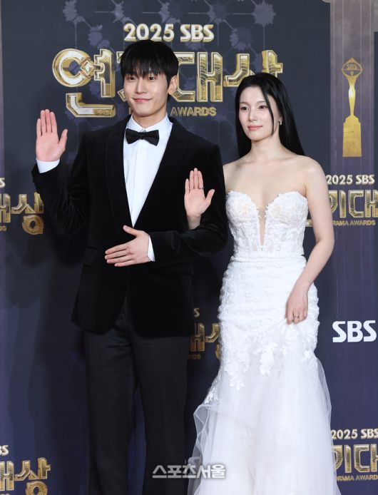 배우 이창민(왼쪽)과 한동희가 31일 서울 마포구 SBS 프리즘타워에서 진행된 ‘2025 SBS 연기대상’ 참석에 앞서 포토월 앞에 서서 취재진을 향해 포즈를 취하고 있다. 2025. 12. 31.박진업 기자 upandup@sportsseoul.com [기사제보 news@sportsseoul.com] Copyright ⓒ 스포츠서울&sportsseoul.com