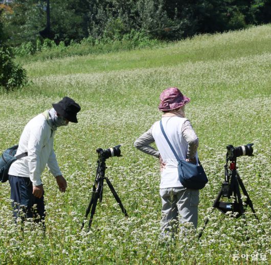 지난여름, 인천의 한 공원에서 만난 커플. 한 차로 같이 왔지만 사진 촬영만큼은 각자 따로 하고 있었다. 사진은 ‘나만의 작업’이란 것을 잘 보여준다. 신원건 기자 laputa@donga.com