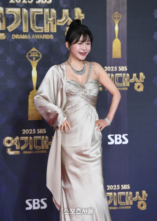 배우 길해연이 31일 서울 마포구 SBS 프리즘타워에서 진행된 ‘2025 SBS 연기대상’ 참석에 앞서 포토월 앞에 서서 취재진을 향해 포즈를 취하고 있다. 2025. 12. 31.박진업 기자 upandup@sportsseoul.com [기사제보 news@sportsseoul.com] Copyright ⓒ 스포츠서울&sportsseoul.com