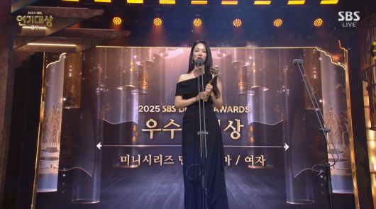 전여빈은 31일 열린 '2025 SBS 연기대상'에서 '우리영화'로 우수연기상 미니시리즈 멜로드라마 부문을 수상했다.