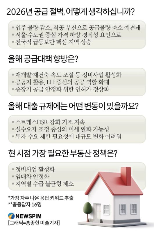2026년 부동산 정책·공급물량·대출규제 관련 전문가 전망 인포그래픽 [그래픽=홍종현 미술기자] |