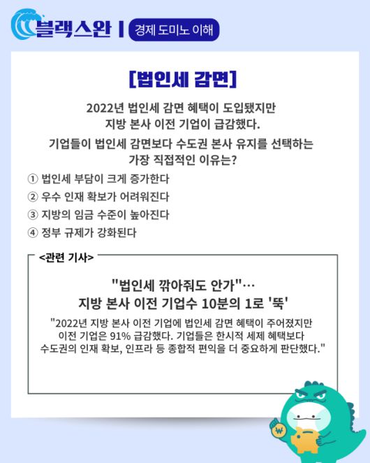 ▶기사 바로가기: “법인세 깎아줘도 안가”···지방 본사 이전 기업수 10분의 1로 ‘뚝’