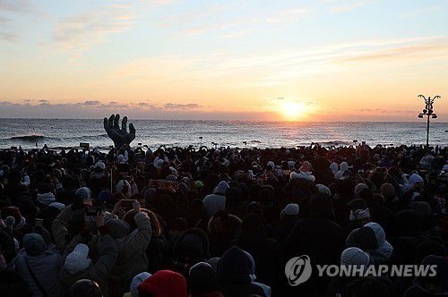 (포항=연합뉴스) 2026년의 첫날인 1일 오전 경북 포항시 호미곶에서 시민들이 해맞이하고 있다. 포항시는 이날 해맞이 행사에 약 5만명이 모였다고 밝혔다. 2026.1.1 [포항시 제공. 재판매 및 DB 금지]