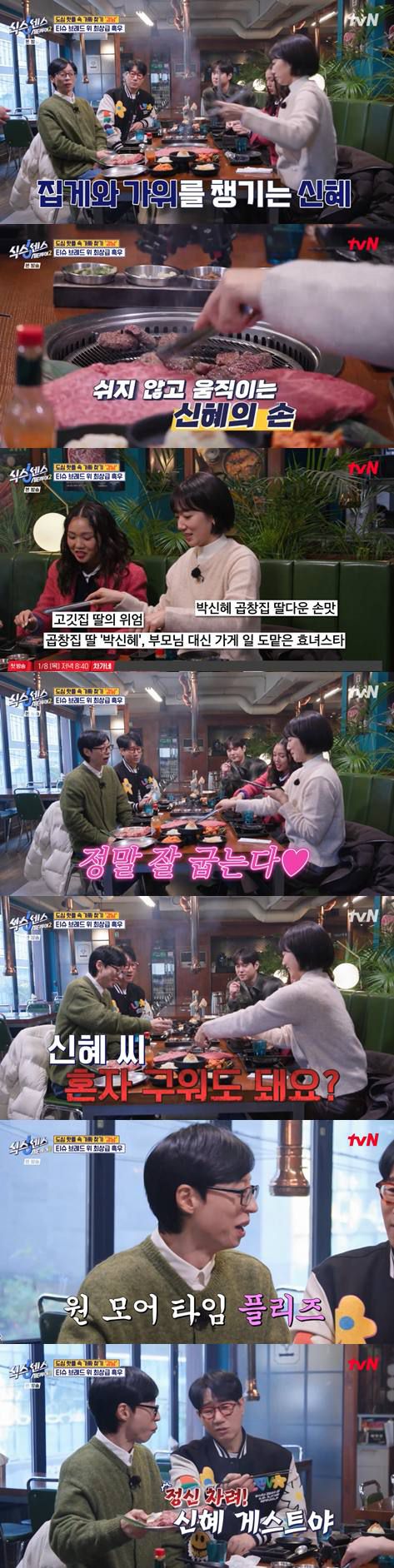 (엑스포츠뉴스 이예진 기자) 배우 박신혜가 ‘식스센스’에서 남다른 고기 굽기 실력을 뽐내며 ‘고깃집 딸’ 면모를 톡톡히 드러냈다.