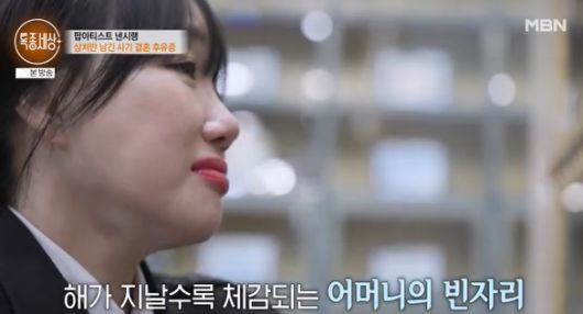 무엇보다 올해 모친이 세상을 떠난 지 벌써 15년이 됐다는 낸시랭. 그래서일까. 낸시랭은 “8년 전, 빨리 가정을 이루고 싶었던 마음도 그 그리움 때문이었을지 모른다”고 조심스럽게 털어놓았다.친구를 만난 뒤, 그는 어머니를 모신 봉안당으로 향했다. 명절과 성탄절이 다가올 때마다 마음이 더 허전해진다고 해 안타까움을 안기기도.