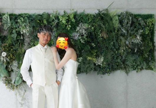 여성 배우자와 결혼 기념 사진을 찍은 일본 여자 축구 국가대표 출신 야마자키 마루미 [본인 SNS 캡처] |