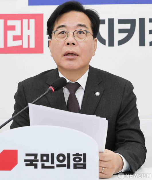 [서울=뉴스핌] 윤창빈 기자 = 송언석 국민의힘 원내대표가 2일 서울 여의도 국회에서 현안 관련 기자간담회를 하고 있다. 2026.01.02 pangbin@newspim.com