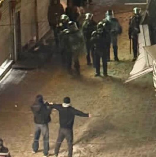 이란 경찰과 대치하는 시위대. 연합뉴스 |