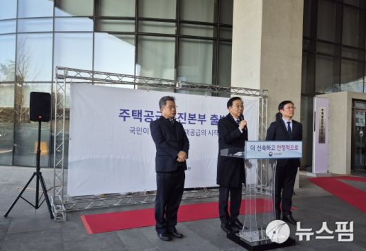 김 장관은 이날 정부세종청사에서 열린 주택공급추진본부 출범식 및 현판식에서 공급 대책 발표 시기에 관한 기자 질의에 "주택 공급은 단기간에 한꺼번에 늘릴 수 있는 사안이 아닌 만큼 수도권 전반을 대상으로 공급 여력을 계속 점검하고 있다"며 "이달 중 출장이 예정돼 있어 10일 이후 준비가 되는 대로 후속 조치를 추진할 계획"이라고 설명했다.