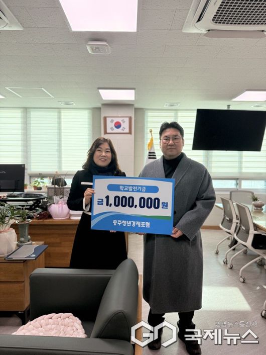 (충주=국제뉴스) 이재기 기자 = 충북 충주 중앙탑고등학교는 2일 개교 이래 첫 졸업식을 맞아 충주청년경제포럼으로부터 학교발전기금 100만 원을 기탁받았다고 밝혔다.