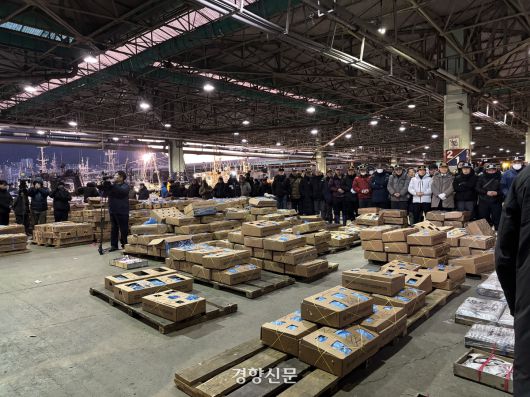 우리나라 최대 규모 산지 어시장인 부산공동어시장에서 2일 새해 첫 경매가 열렸다. 지난해 부산공동어시장은 위판고 3800억 원(15만6000여t)을 달성해 2012년(4300억 원) 이후 13년 만의 최대 실적을 기록했다.